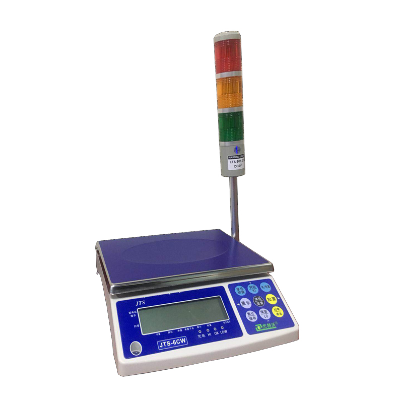 *具有三段式重量警示功能,可设定上限,标准,下限重量警示,并自带三色警示灯,且具有一级记忆功能